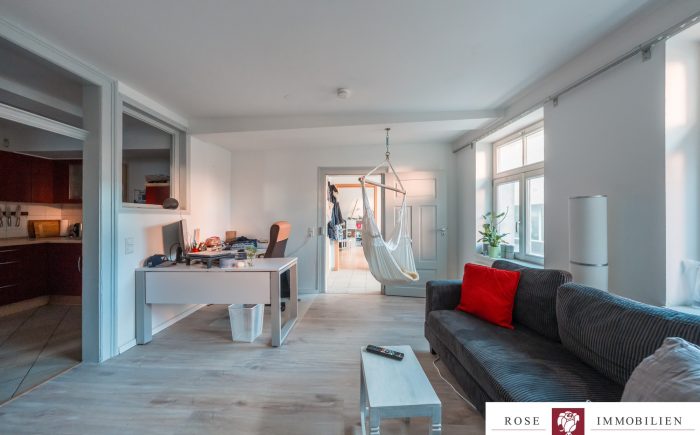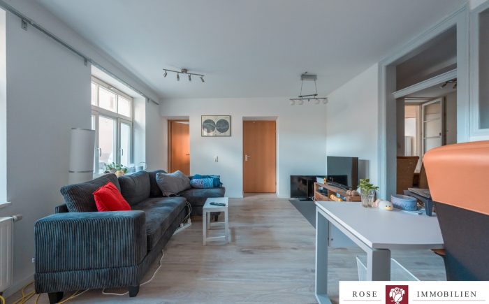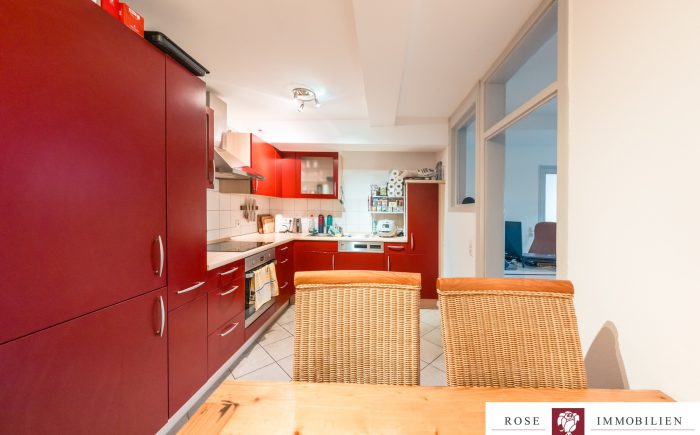 Die Wohnung verfügt über eine Wohnfläche von ca. 71 m², verteilt auf drei gut geschnittene Zimmer. Zwei Schlafzimmer bieten ausreichend Platz, das moderne Badezimmer ist mit zwei Waschbecken, Duschwanne und hochwertigen Armaturen ausgestattet. Die offene Essküche lädt nicht nur zum Kochen ein, sondern bietet auch genügend Raum für einen Esstisch. Besonders praktisch ist die getrennte Mietaufteilung: Die Wohnung wird mit 1.080 € Kaltmiete und die Küche separat mit 40 € Kaltmiete vermietet, was die transparente Mietstruktur für Kapitalanleger klar darstellt.