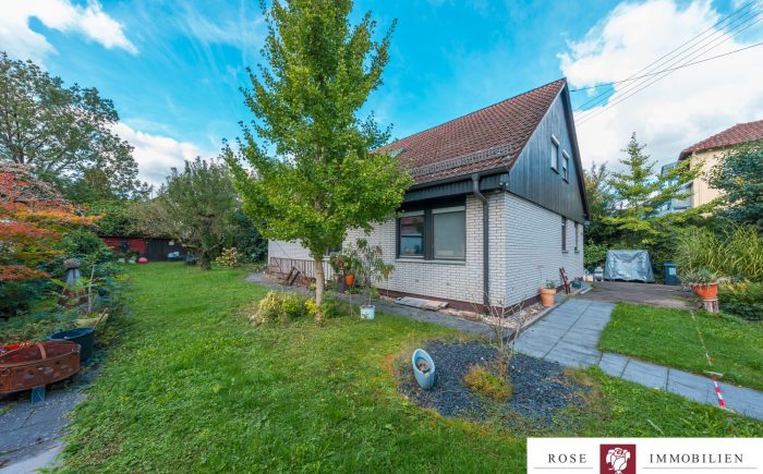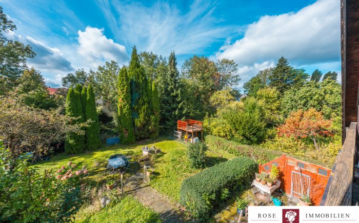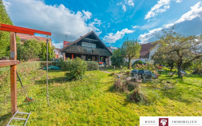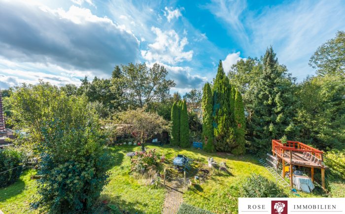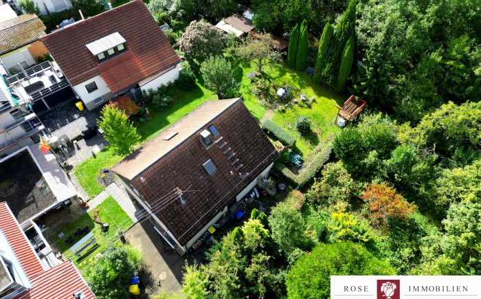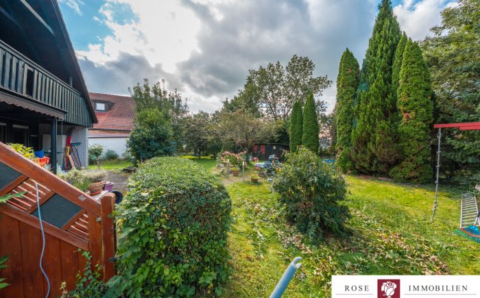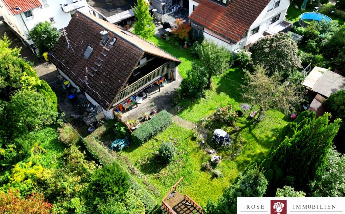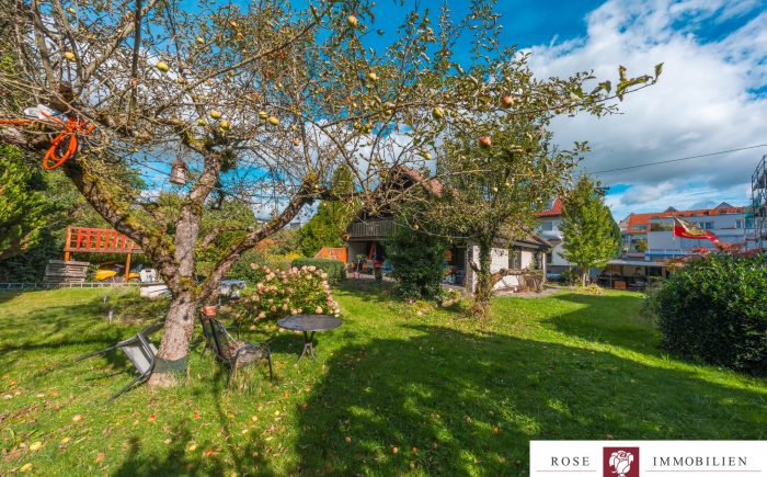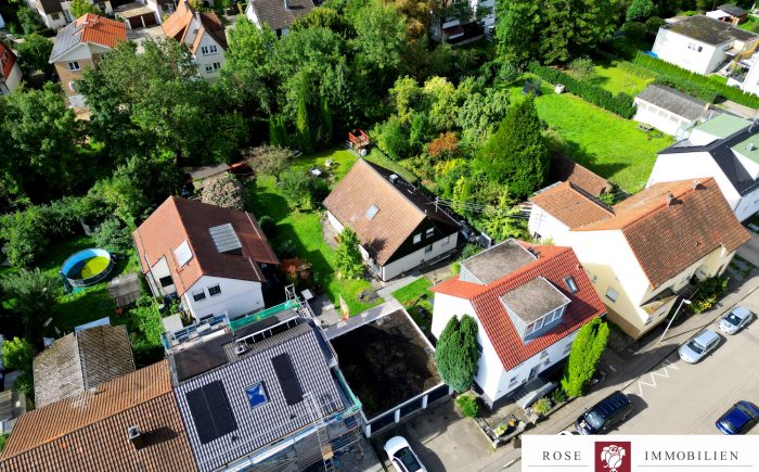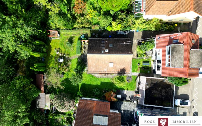 Das Grundstück befindet sich in zweiter Reihe, fernab von Durchgangsverkehr, und besticht durch seine idyllische Lage. Die südliche Ausrichtung sorgt für lichtdurchflutete Stunden im Garten – ein Paradies für Gartenliebhaber, Familien und alle, die das Leben im Grünen schätzen.