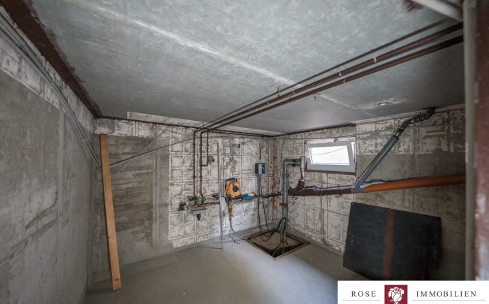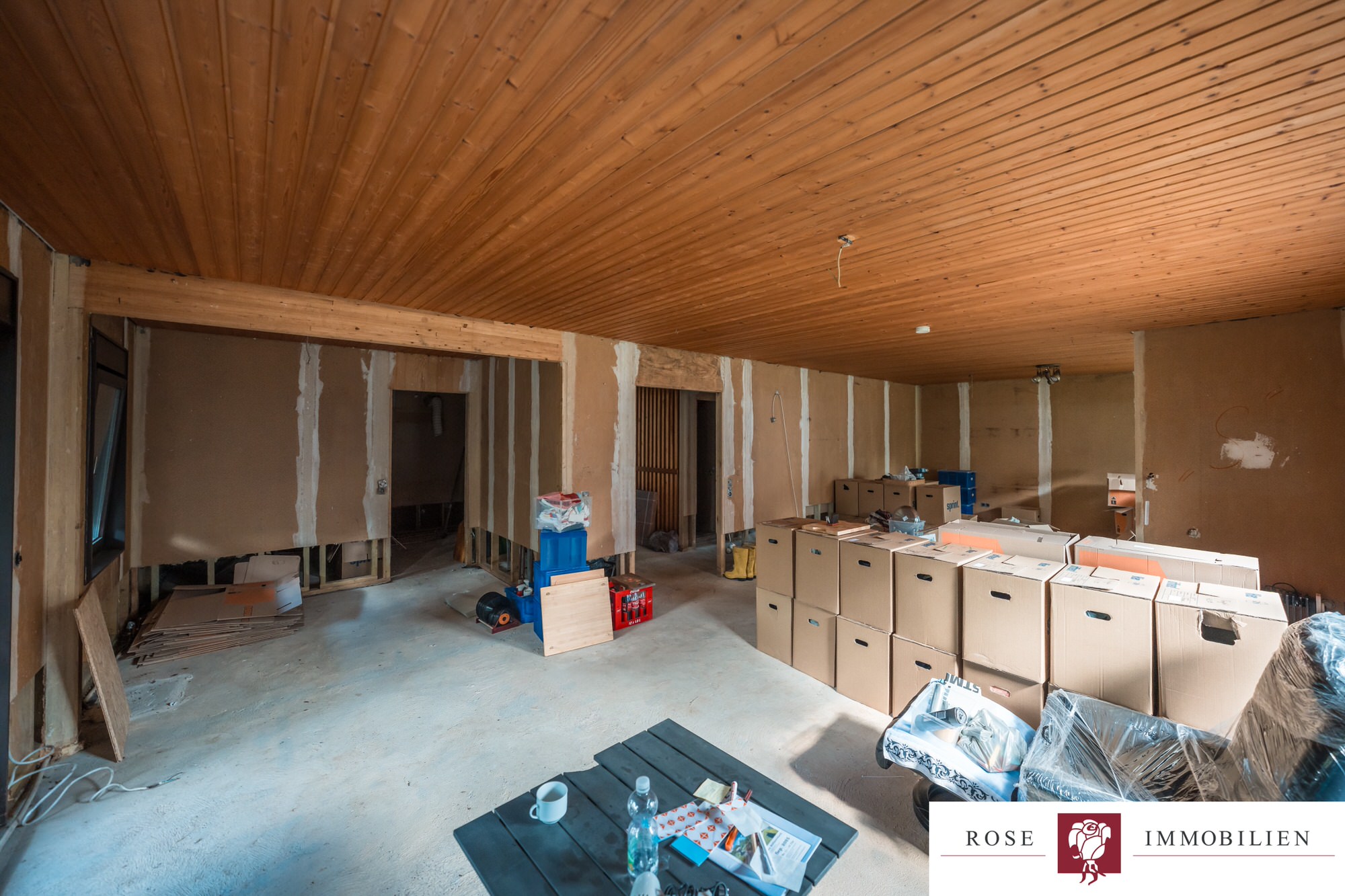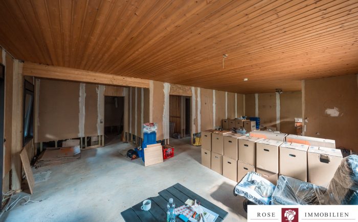 Aktuell ist das Grundstück noch mit einem Wohnhaus aus dem Baujahr 1980 bebaut. Dieses wurde in Holzständerbauweise errichtet, was einen Abriss besonders unkompliziert macht und damit den Weg für ein neues Bauvorhaben erleichtert. Zwar wurde das Gebäude durch das Hochwasser im Jahr 2024 stark beschädigt, doch der massive Keller in Form einer „Weißen Wanne“ ist vollständig erhalten geblieben und kann problemlos in eine Neubebauung integriert werden – ein klarer Vorteil für künftige Bauherren.