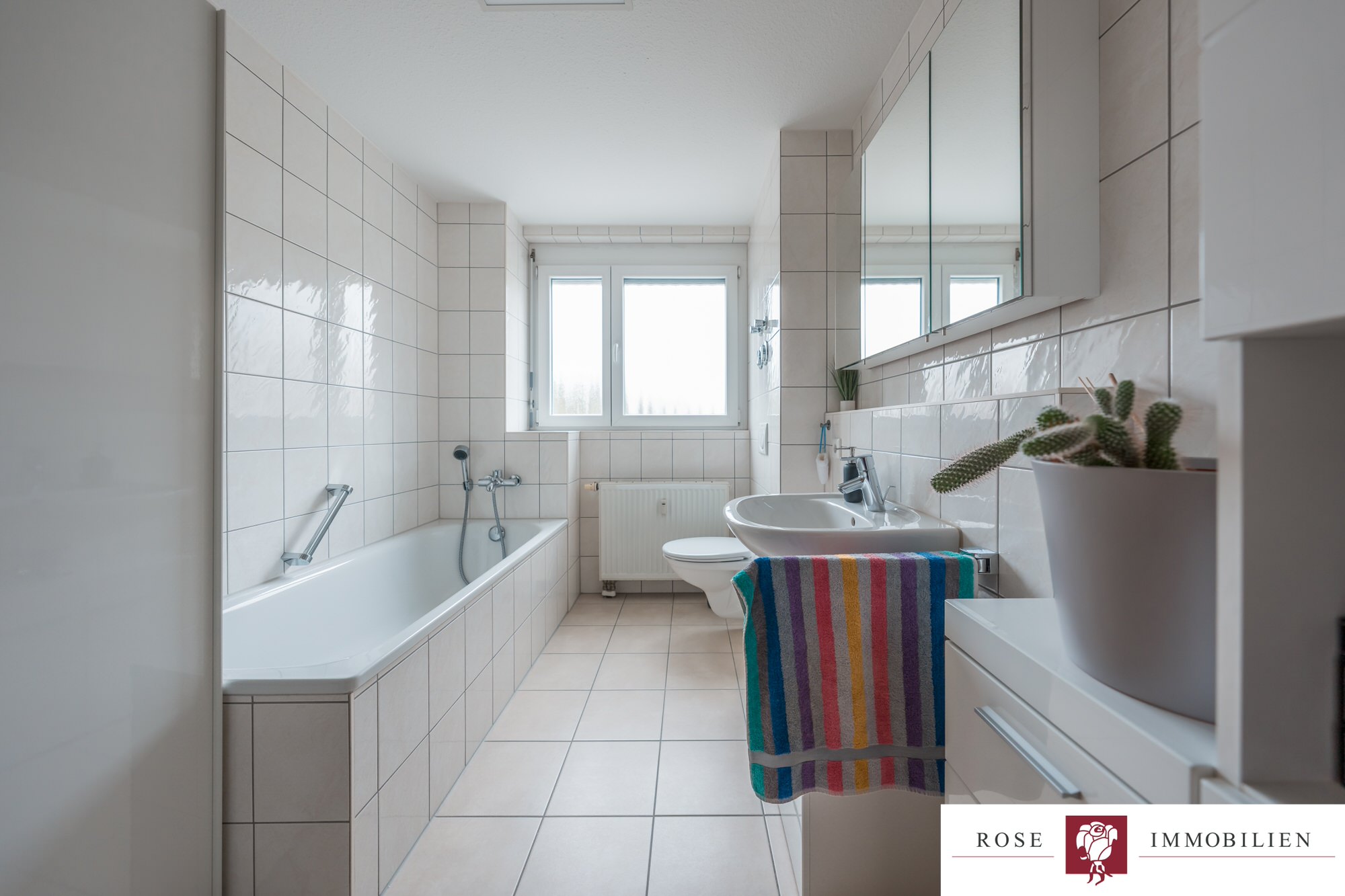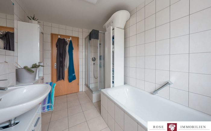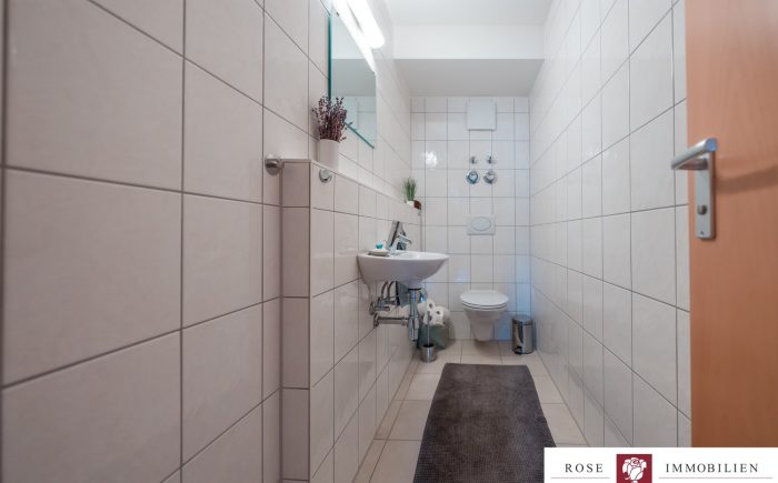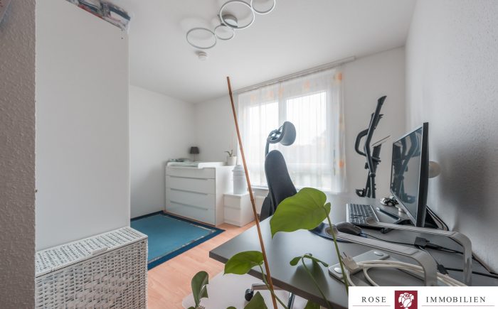 Neben dem Wohnzimmer stehen Ihnen ein Schlafzimmer, ein Kinderzimmer sowie ein praktischer Abstellraum innerhalb der Wohnung zur Verfügung. Das Badezimmer ist modern gefliest und mit einer Badewanne sowie einer separaten Dusche ausgestattet. Ein zusätzliches, separates WC sorgt für Komfort im Alltag.