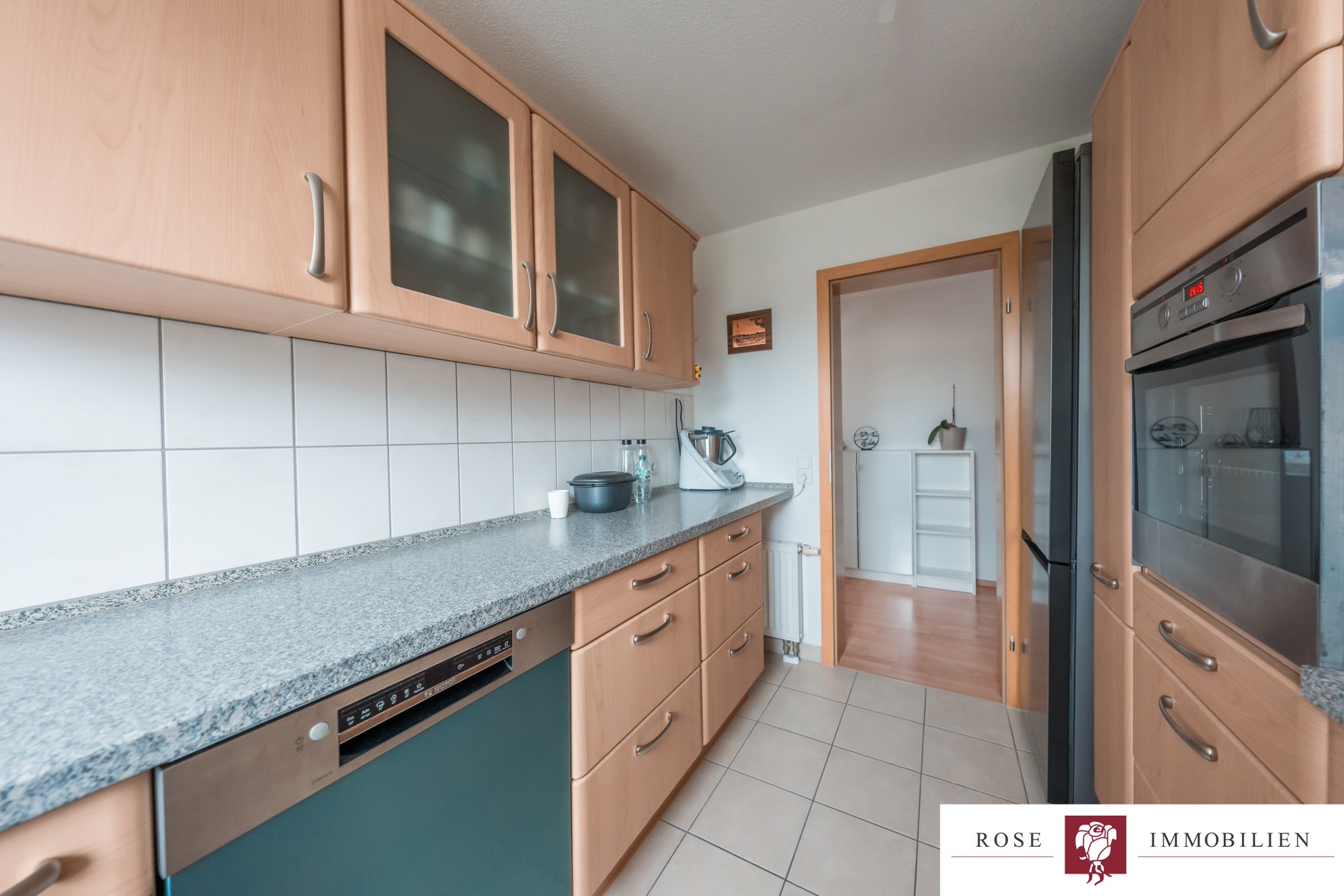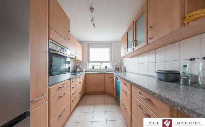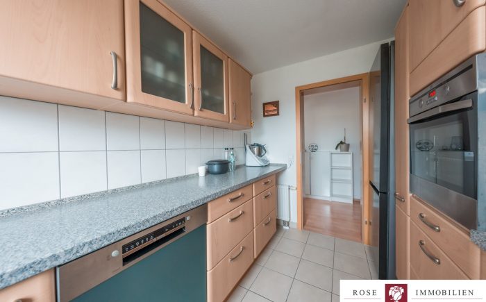 Die vorhandene Einbauküche ist funktional gestaltet und im Kaufpreis enthalten. Sie bietet alle notwendigen Anschlüsse und genügend Stauraum.