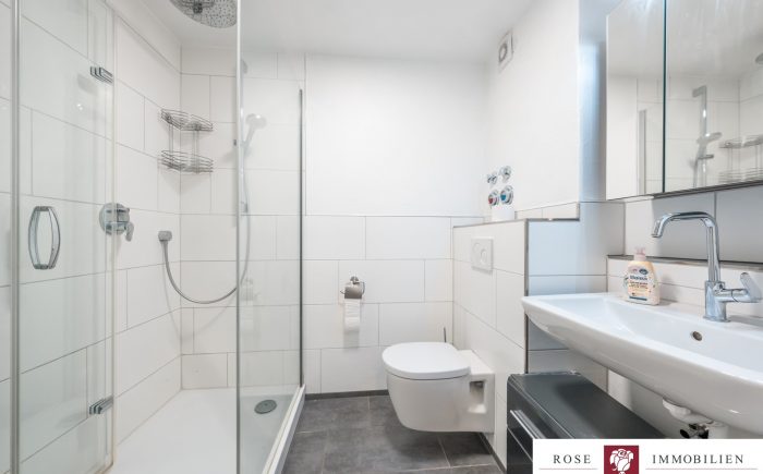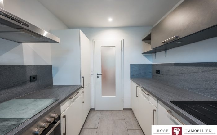 Das Badezimmer wurde 2016 komplett modernisiert und präsentiert sich hell, zeitgemäß und pflegeleicht. Auch die Einbauküche wurde im selben Jahr erneuert. Sie ist mit modernen Elektrogeräten ausgestattet und bietet alles, was man zum Kochen und Genießen braucht – perfekt für alle, die gerne Zeit in der Küche verbringen.