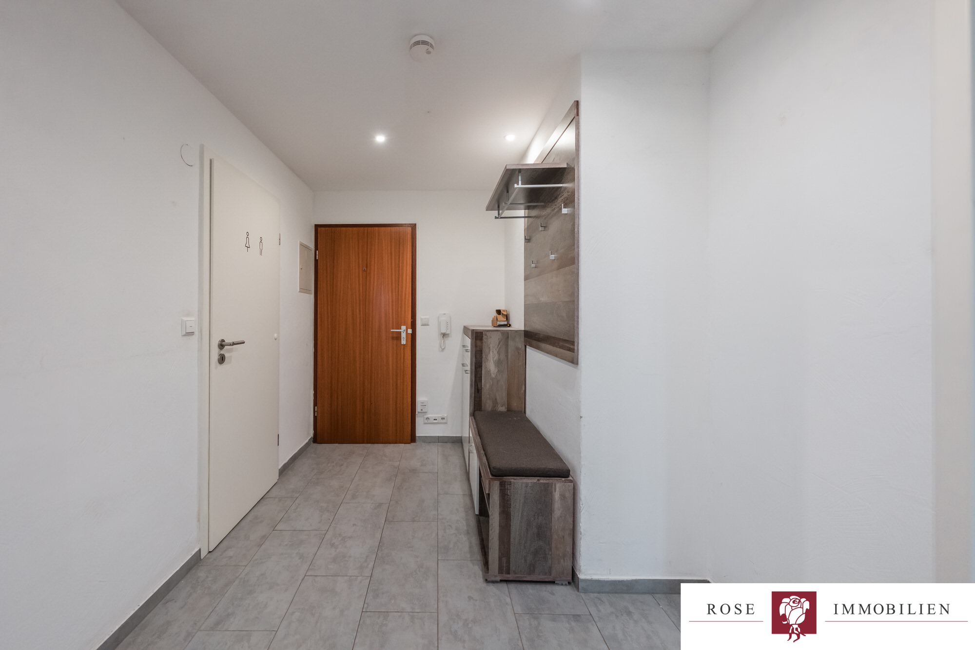 Insgesamt verfügt die Wohnung über zwei gut geschnittene Zimmer. Das Schlafzimmer bietet ausreichend Platz für ein großes Bett und Stauraum.