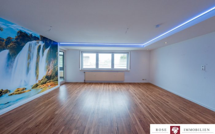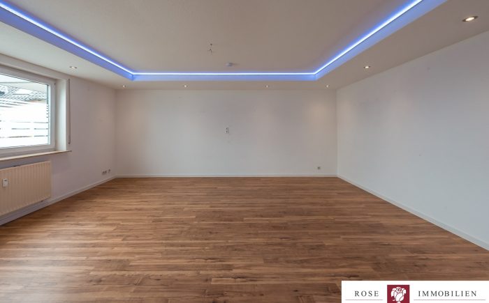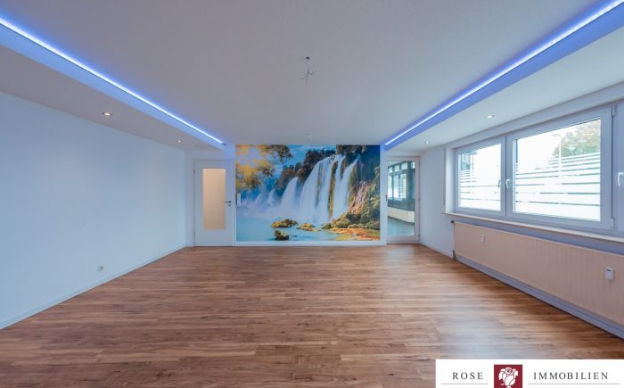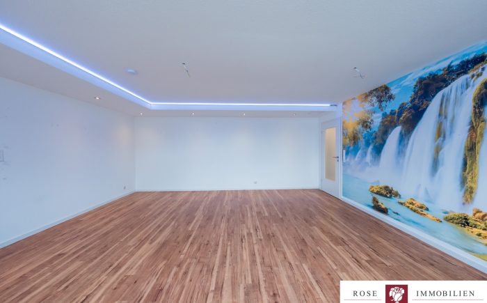 Das besondere Highlight dieser Wohnung ist das großzügige Wohnzimmer mit abgehängter Decke, das sofort durch seine helle und freundliche Atmosphäre überzeugt. Die abgehängte Decke mit integrierter Beleuchtung sorgt für ein modernes Wohngefühl und verleiht dem Raum eine behagliche Note. Durch die gute Raumaufteilung lassen sich Wohn- und Essbereich harmonisch miteinander verbinden.