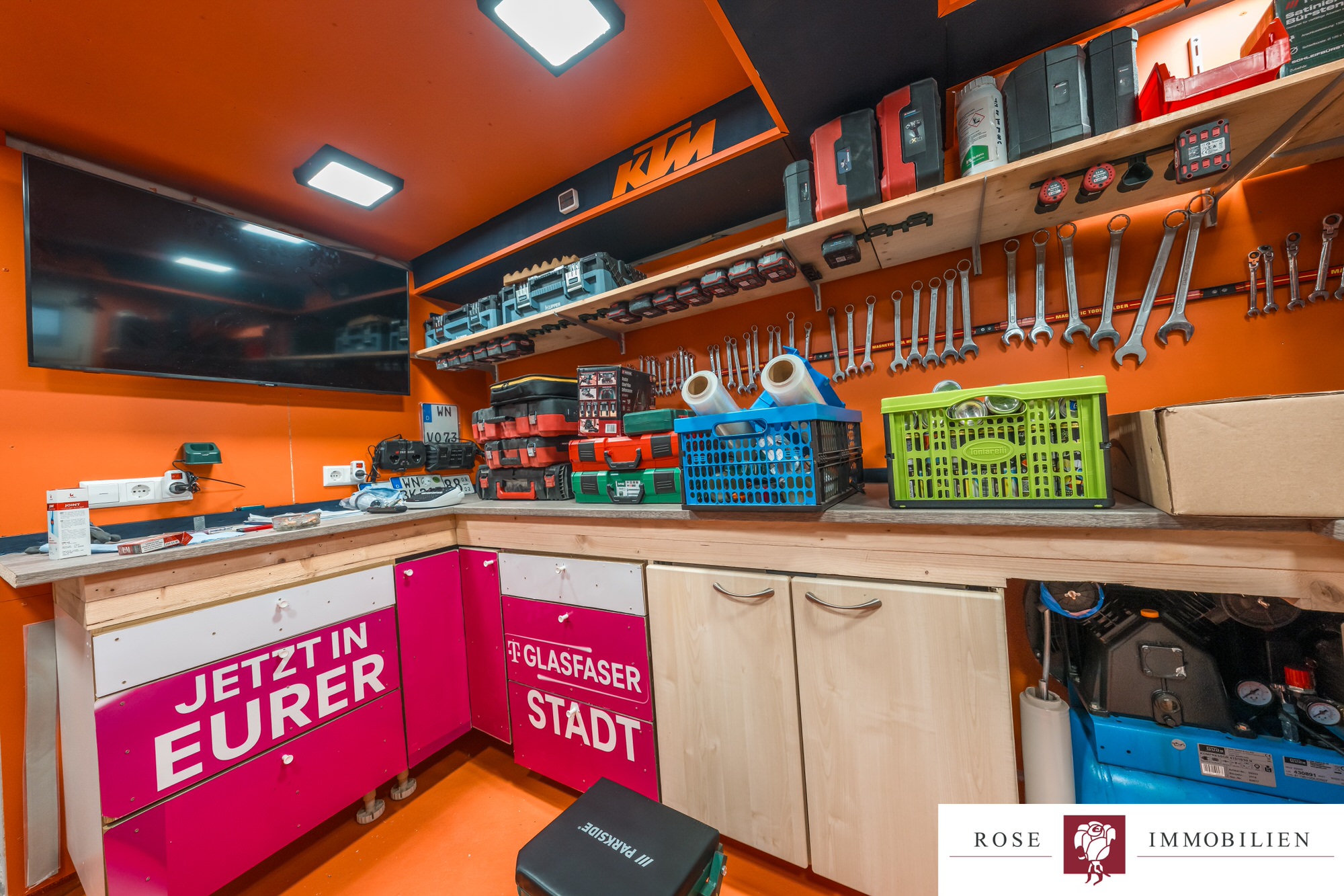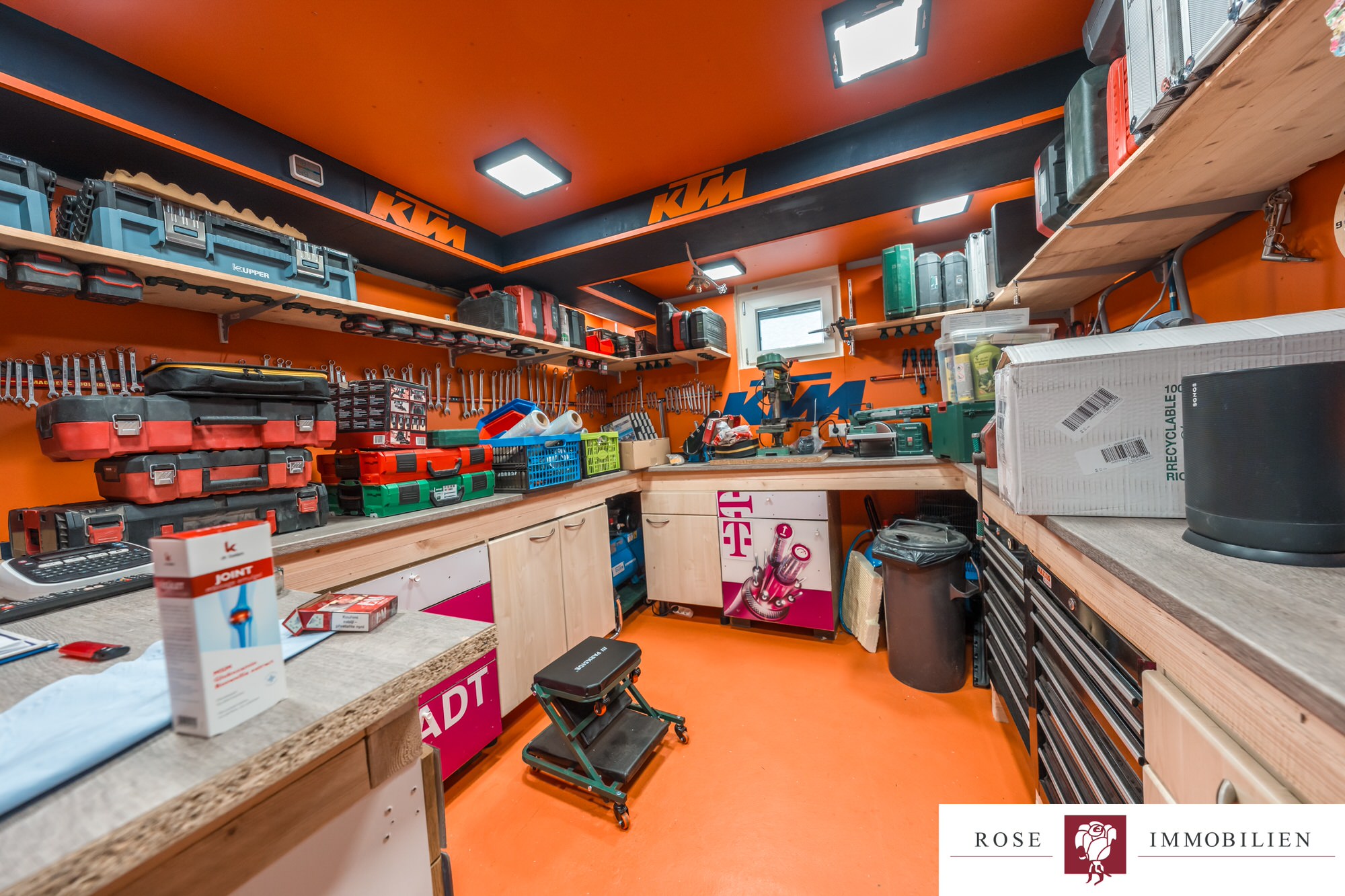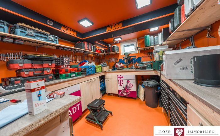Das ausgebaute Dachgeschoss bietet Ihnen darüber hinaus vielseitige Möglichkeiten, diesen Raum individuell zu nutzen — sei es als Schlafzimmer, Büro oder Hobbyraum, ist aber baurechtlich keine Wohnfläche. Zudem finden Handwerker im großzügigen Untergeschoss mit einer großen Werkstatt zahlreiche Gelegenheiten, ihren Projekten nachzugehen und ihrer Kreativität freien Lauf zu lassen.