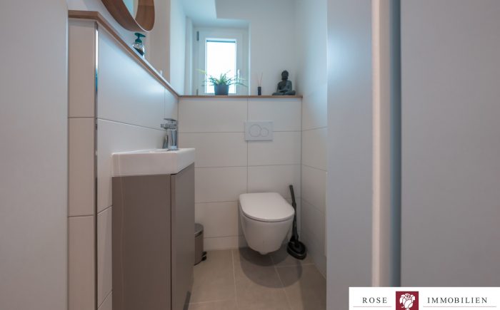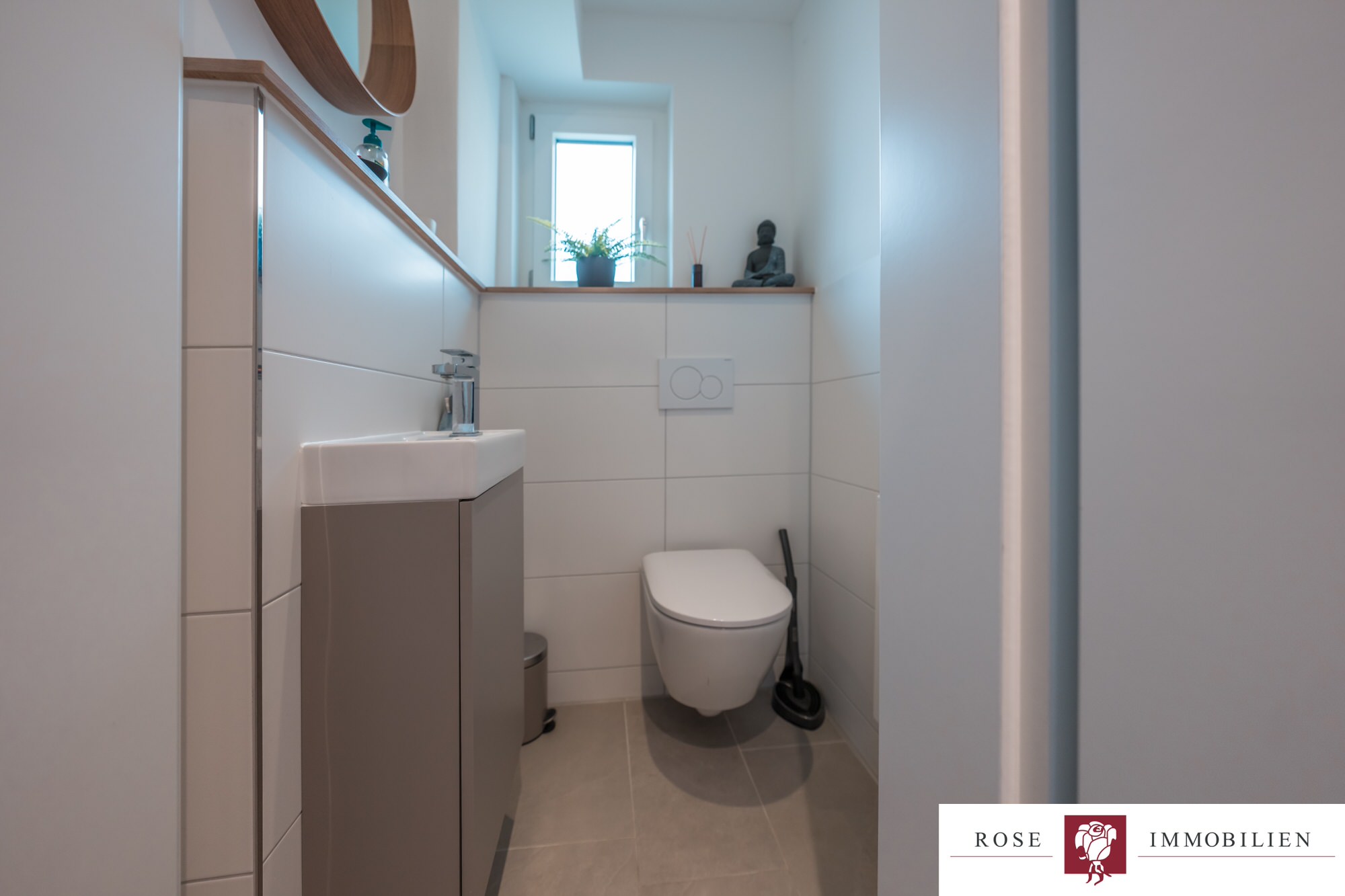 Ein besonderes Highlight dieses Anwesens sind die beiden einladenden Terrassen, auf denen Sie die frische Luft und die Sonne genießen können, während der Balkon weitere Möglichkeiten zum Entspannen im Freien bietet. Die zwei separaten WCs im Erd- und Obergeschoss bieten zusätzlichen Komfort und Privatsphäre.