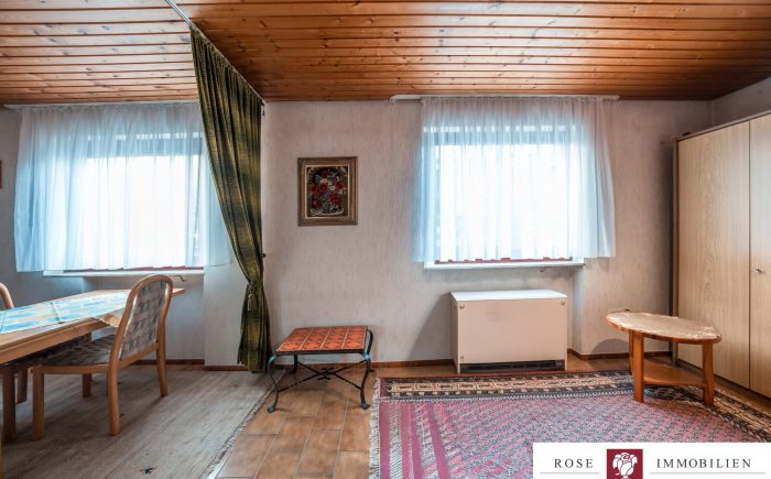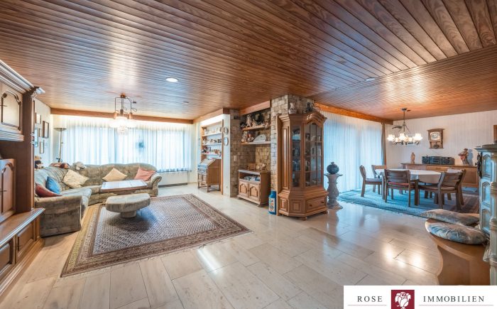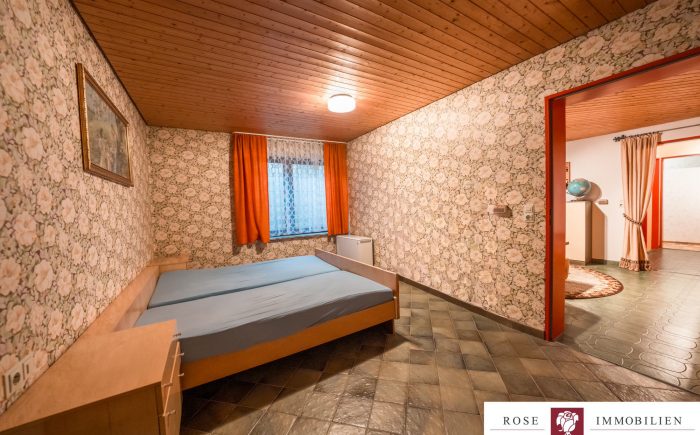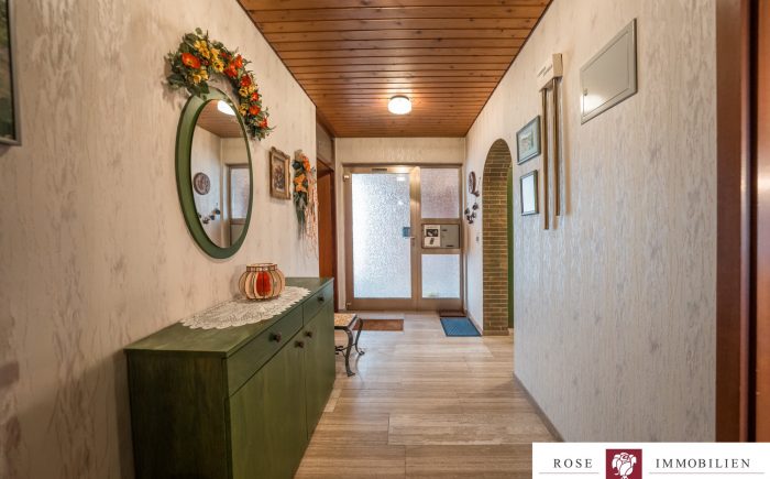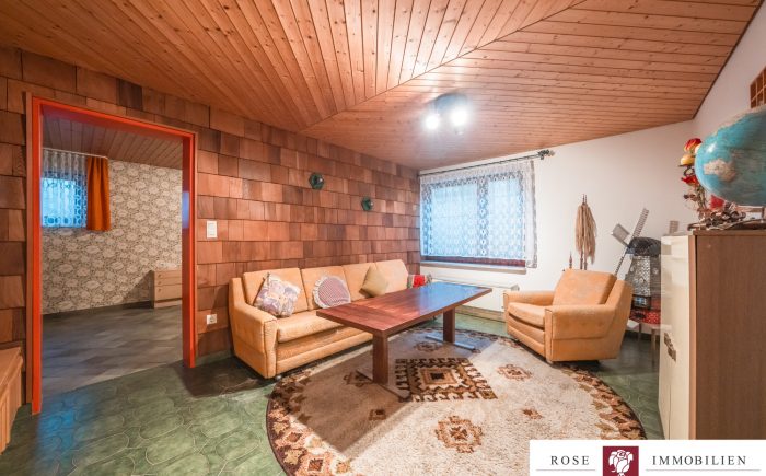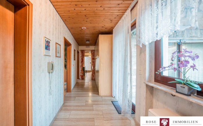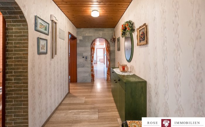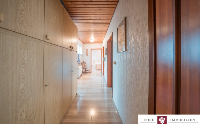 Auf einem gepflegten Grundstück von ca. 342 m² gelegen, erstreckt sich dieses einladende Haus auf zwei gut durchdachte Etagen und bietet eine Wohnfläche von etwa 132 m² nur auf einer Etage. Das gesamte Haus ist vollständig unterkellert und hat somit die gleiche Fläche nochmals als Nutzfläche. Die kluge und funktionale Raumaufteilung sorgt dafür, dass jede Ecke des Hauses optimal genutzt wird. Mit insgesamt vier Zimmern, darunter drei geräumige Schlafzimmer, ist mehr als genügend Platz für Familie, Freunde oder Gäste vorhanden. Zwei Badezimmer (eines wurde 2007/2008 modernisiert) und ein zusätzliches Gäste-WC erhöhen den Wohnkomfort und zeigen die durchdachte Ausstattung des Hauses.