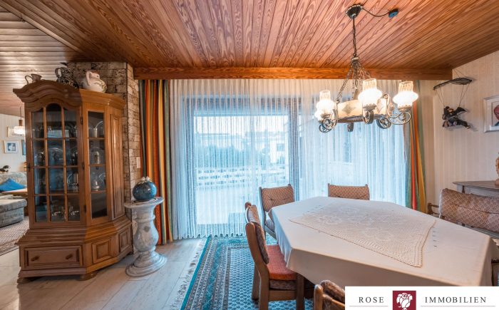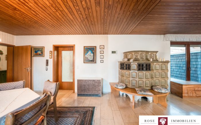Die integrierte Einbauküche ist ideal für kulinarische Abende mit Freunden und Familie. Die Wohnräume sind lichtdurchflutet und bieten dank des nostalgischen Kachelofens eine behagliche Atmosphäre.