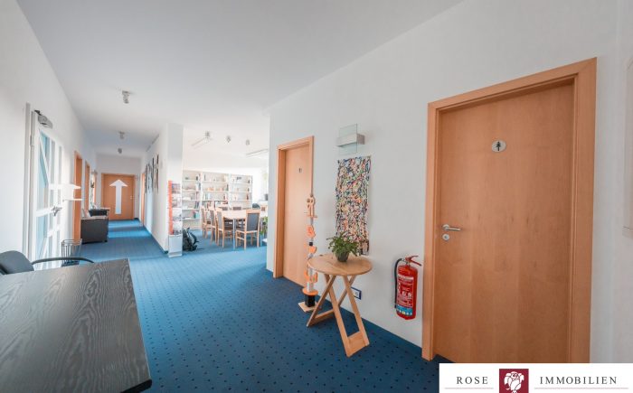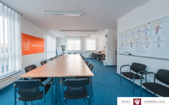 Neben abgetrennten Büros, stehen Ihnen offene Arbeitsmöglichkeiten, Besprechungs- oder Schulungsmöglichkeiten, eine Mitarbeiterküche, Abstellmöglichkeiten und zwei separate WC’s zur Verfügung. Hier haben Sie optimale Bedingungen und eine freundliche Atmosphäre für Fortbildungen, Besprechungen oder Seminare.