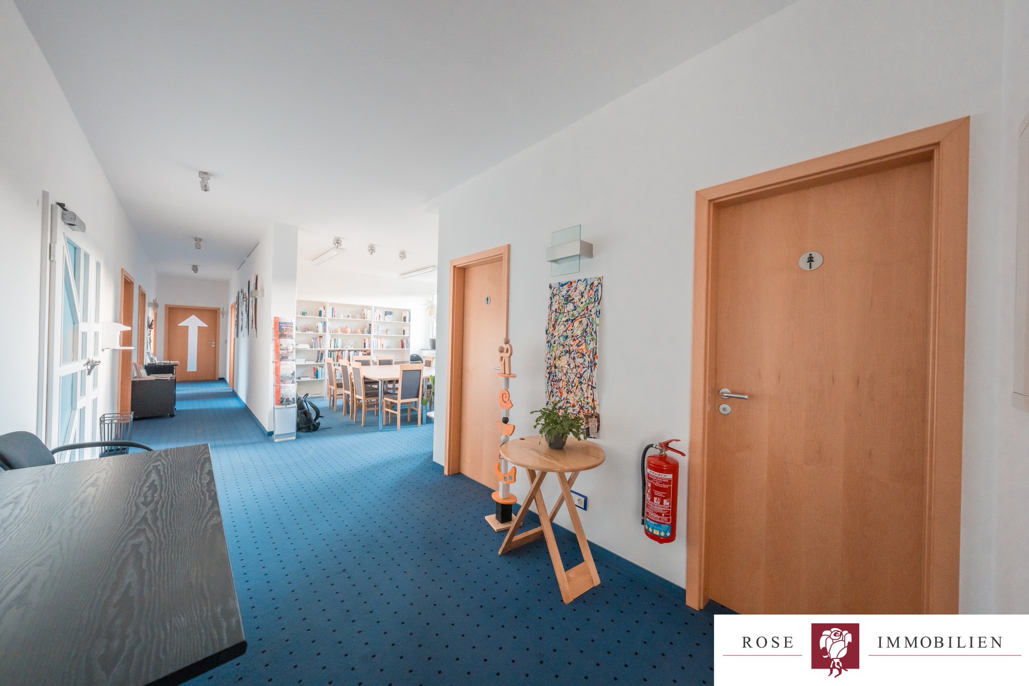 Neben abgetrennten Büros, stehen Ihnen offene Arbeitsmöglichkeiten, Besprechungs- oder Schulungsmöglichkeiten, eine Mitarbeiterküche, Abstellmöglichkeiten und zwei separate WC’s zur Verfügung. Hier haben Sie optimale Bedingungen und eine freundliche Atmosphäre für Fortbildungen, Besprechungen oder Seminare.