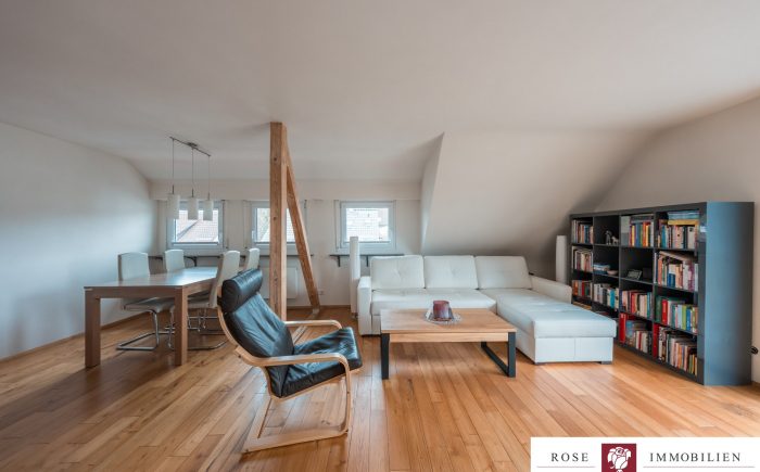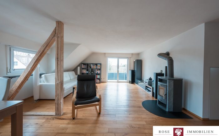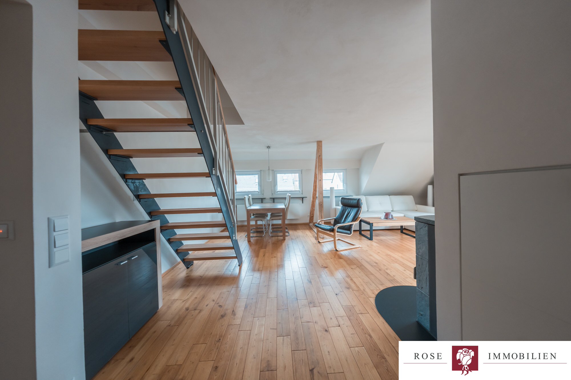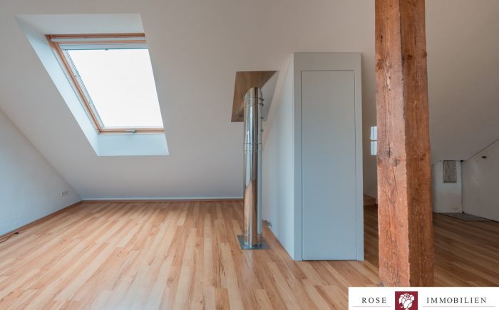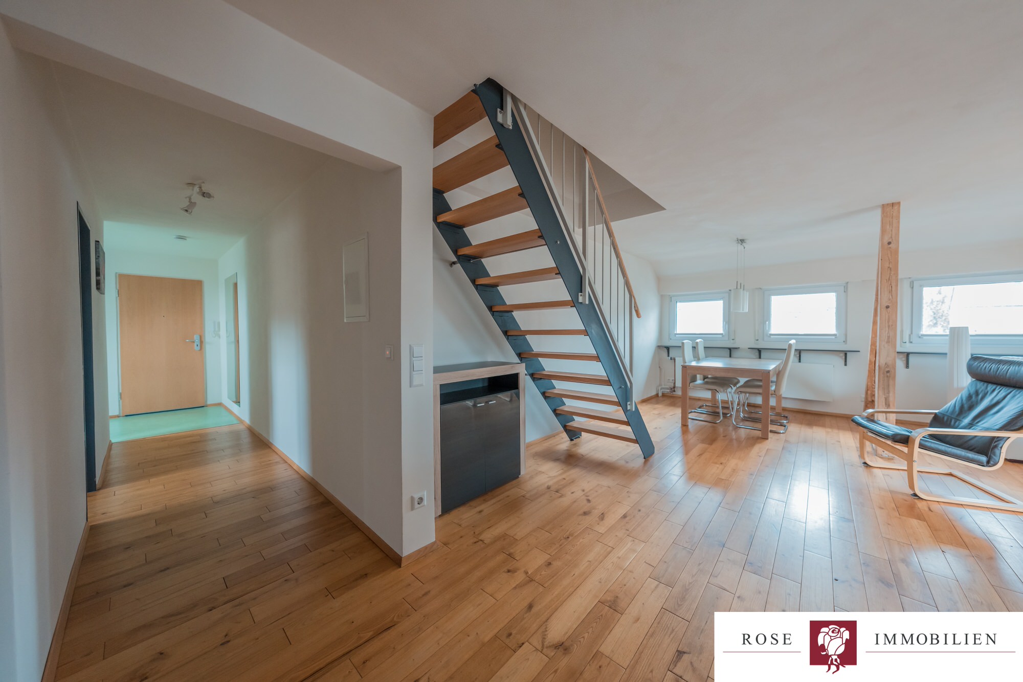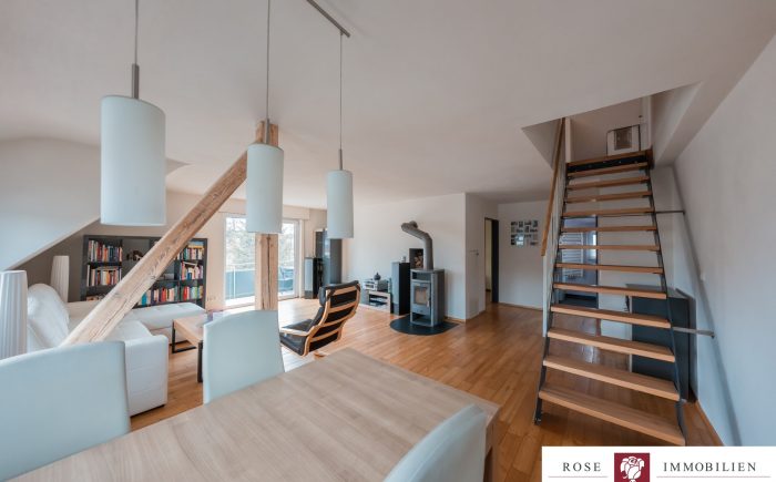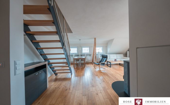 Ein besonderes Highlight ist das große Studio im Dachspitz, das über eine Echtholztreppe erreichbar ist. Dieser Bereich eignet sich hervorragend als zusätzlicher Wohnraum, Homeoffice, Schlafzimmer oder Hobbyraum. Die Wohnung wurde ca. 2011 umfassend modernisiert und befindet sich in einem gepflegten Zustand.