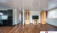 Die Einliegerwohnung zeigt sich mit 3 Zimmern, einer Einbauküche in schöner Holzoptik und einem Badezimmer mit Fenster, Dusche, Waschtisch und WC. Zusätzlich bietet sie ein Schlafzimmer, Wohnzimmer und ein weiteres kleines Zimmer mit Teppichboden. Auf dieser Ebene befinden sich auch eine Waschküche sowie der Heizraum/Technikraum.
